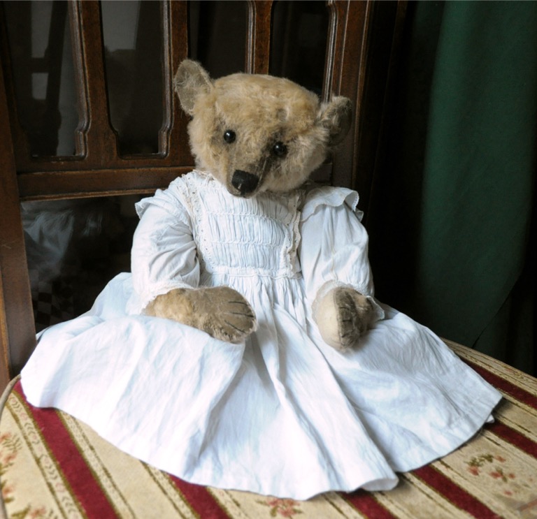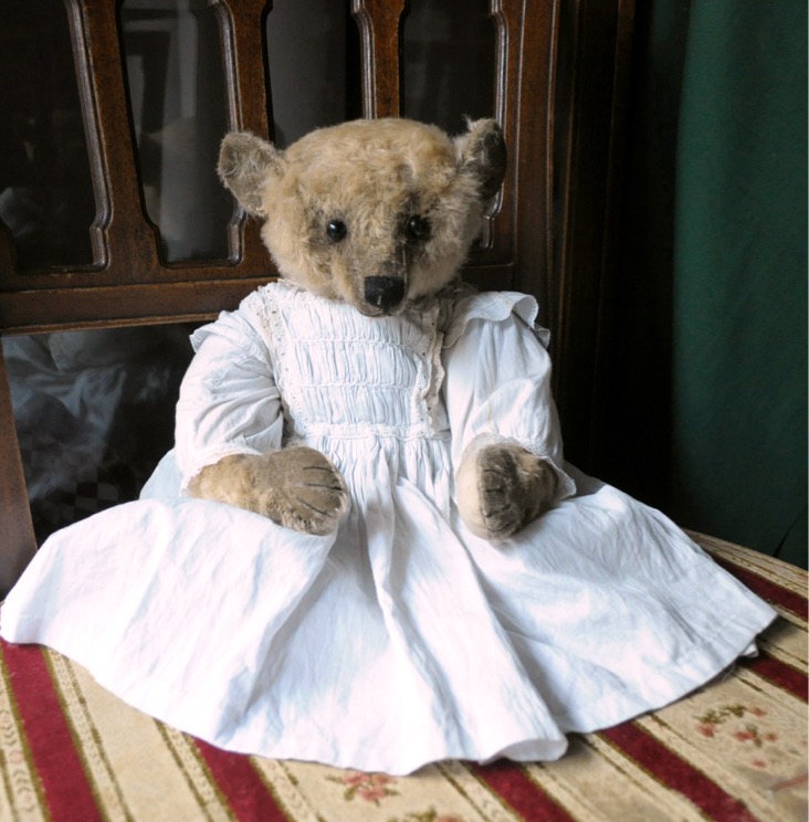 うつむき加減なその姿は、控えめでおとなしくとてもフェミニン。でも決して気が弱いわけではありません。ねぇねぇと話しかけると、まっすぐに前を向いてテディベアとしての役割を果たそうとしてくれます。お顔を撫でてあげると、ふわっモコっとした毛が気持ちよくて、優しい温かい気持ちにさせてくれます。可愛いねって声をかけると、ふわっモコっの毛に赤味がさしてほんのり頬を染めています。なんて乙女なテディさん。遠い昔の乙女な頃をつい思い出しました。
