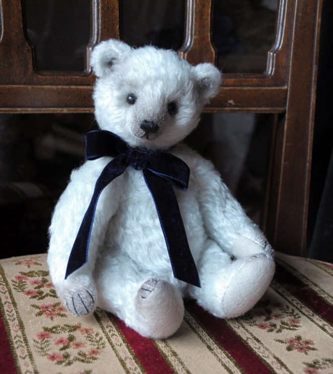 シルバーのくまさん。銀色のくーちゃん。。銀色の銀ぎつねちゃん。。あれっ?「違うよ。キツネじゃないよ。ワタシ、くーちゃんよ。」ごめんごめん。ワタシはくーちゃんだよね。えっ!?ボクじゃなかったっけ?男の子だったよね?お外に遊びに行った時は男の子だったよね?でも今目の前にいる、いっしょにティータイムしてお喋りにつきあってくれてるキミは優しい顔した女の子。不思議だよね〜。つかみどころがないのがテディベア。ぼんやりしているようでシグナルはちゃんとキャッチしてくれる。さて今日の気分はいかがかな?っていうか今日の私は大丈夫かな?
