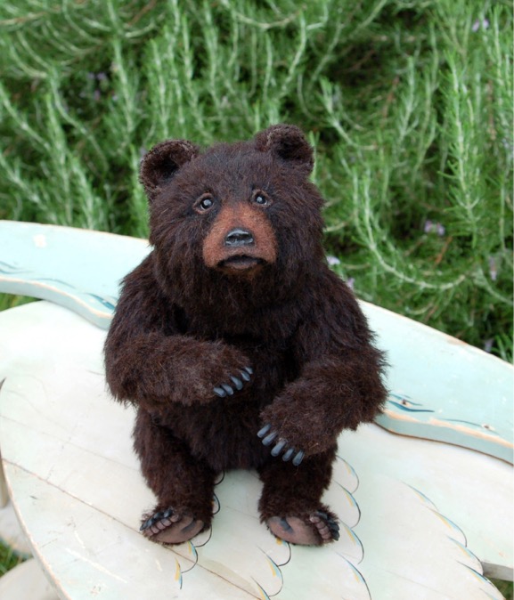 毛は野生のクマさんっぽいアルパカです。ジョイントは手足の4ケ所で、腕にはワイヤーが入っているので、自在な動きができます。首と胴体にはロックラインという骨みたいなものが入っていて、微妙な体の動きが表現できます。体の表情が生まれて、生きてるみたいで可愛いです。