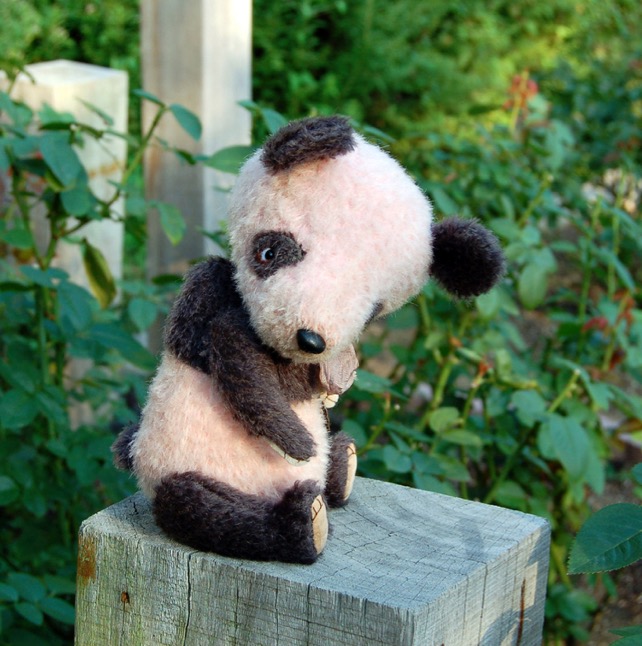 顔というか頭部のナス? いえ、じゃがいも?のような変わった形も愛おしい気持ちがうずきます。色とか触った感じ(お腹やわらかいです)とかもポイント高いです。ビーボという名前で、Aのペンダントは謎。まっいいか〜。。 ビーボは、 まっいいか〜 と、いつも何でも思ってしまうタイプのクマパンダです。